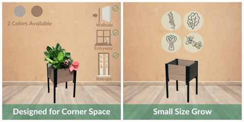 | Back and knee pain is gone for good! Premium quality elevated garden beds are perfect for growing vegetables, flowers and herbs. The composite veneer boards and heavy-duty steel brackets ensure a strong and durable frame that can last up to 10 years. Two colours are available. Perfect for the corner of any deck, porch, balcony or indoor/outdoor space, it can also be converted to a corner table when not used as a planter. | |||