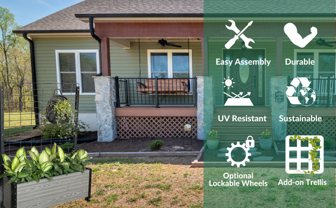 • Vertical growing space is extended by combining the raised planter with trellis to make vining plants grow freely, therefore creating a gorgeous and decorative scene.