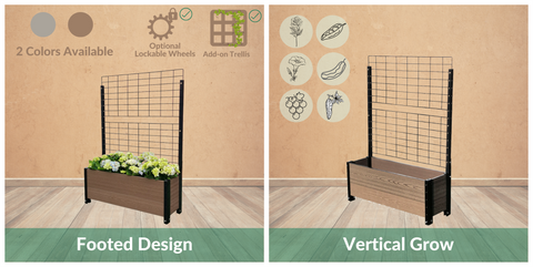 Product Name Everbloom K2106 Footed Deep Trough Planter with Trellis  Everbloom K2105 Footed Trough Planter with Trellis  Everbloom K2103 Footed Deckside Planter with Trellis  Everbloom K2130 Wallside Raised Garden Bed with Trellis  Everbloom K2132 Deep Root Raised Garden Bed with Trellis  Everbloom K2134 Cascade Raised Garden Bed with Trellis